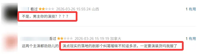 有人说“本来冲着双向暗恋来的,结果被郑合惠子的瞪眼演技劝退,好好的角色被演废了”、“魏哲鸣的高冷是刻在脸上了吗?全程没表情,这CP磕得我浑身难受”。